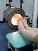 2. 光線治療器や超短波温熱器で足裏や腰など不具合部分を温めます。